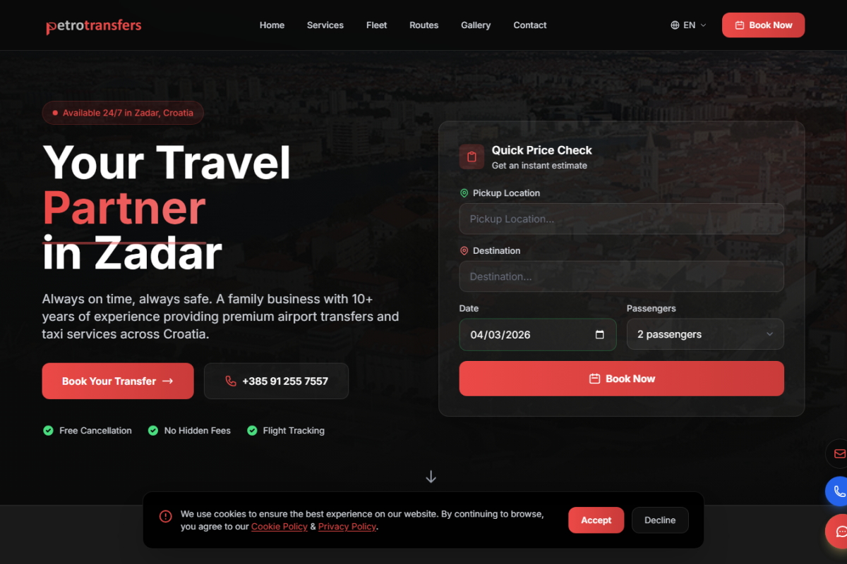 Razvijeno po mjeri za prijevozničku tvrtku iz Zadra s fokusom na korisničko iskustvo i automatizaciju poslovnih procesa.